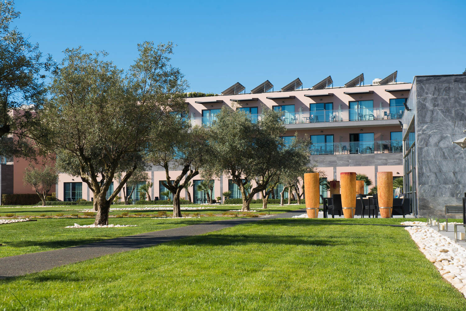 Hotel FAO02 har også Satsanga spa med en dynamisk indendørs pool, tre restauranter med gastronomiske forslag fra regionen, et udstyret konferencecenter med kapacitet til 550 personer, børneklub, tennisbaner, multisportsbane og putting green.