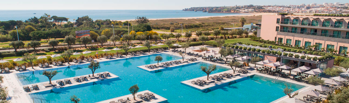 Hotel FAO02 ligger ved Meia Praia-området i Algarve og imponerer med en betagende udsigt over havet.